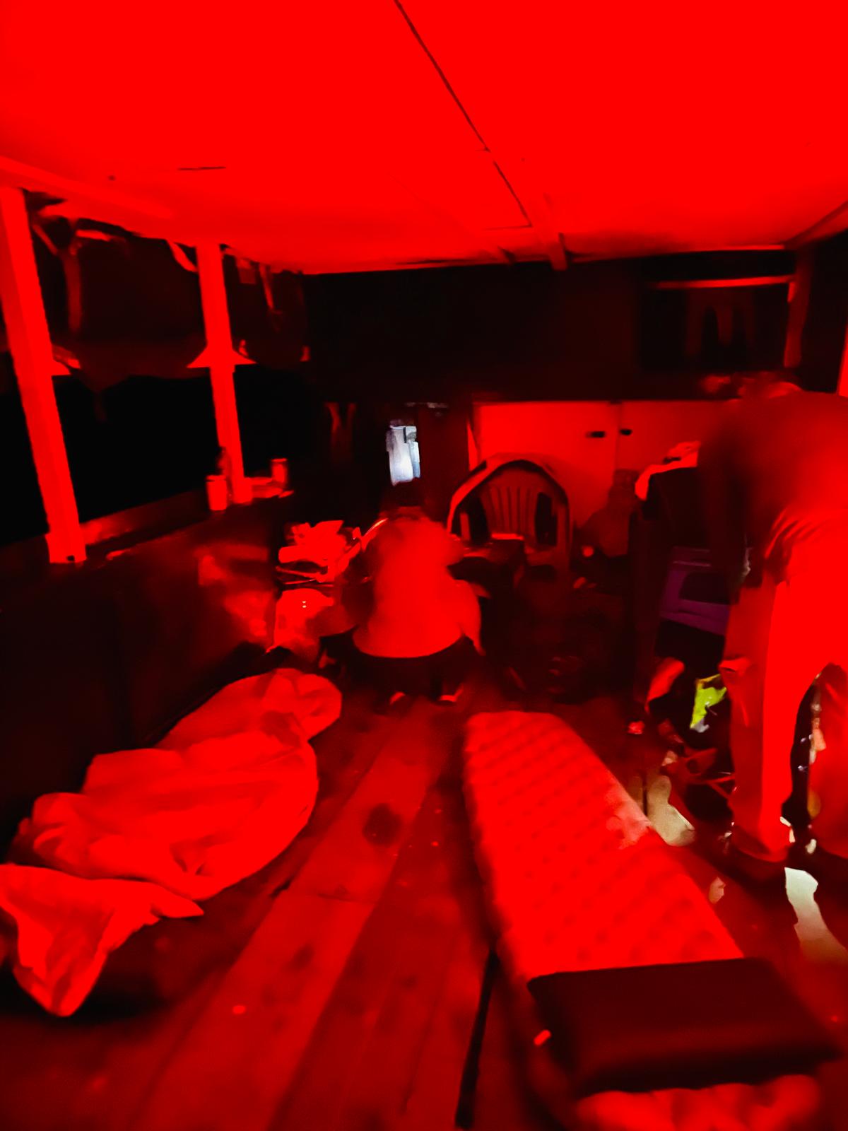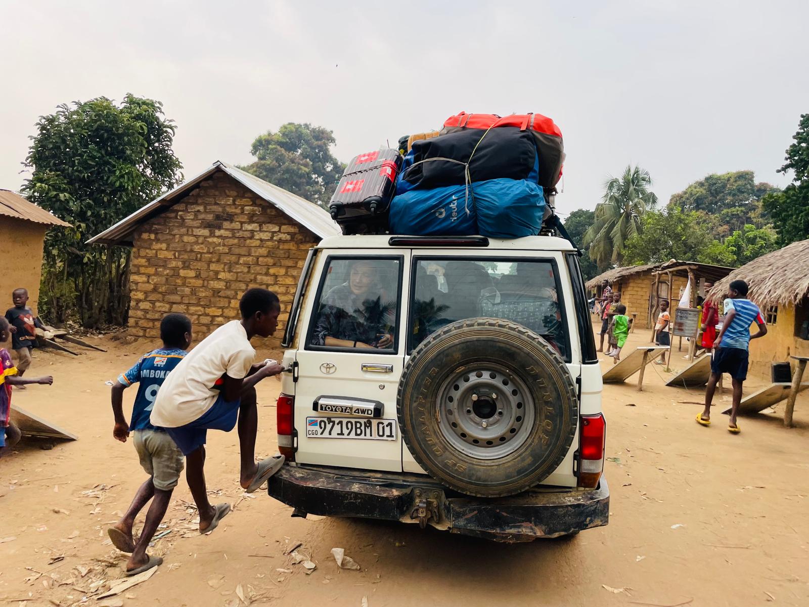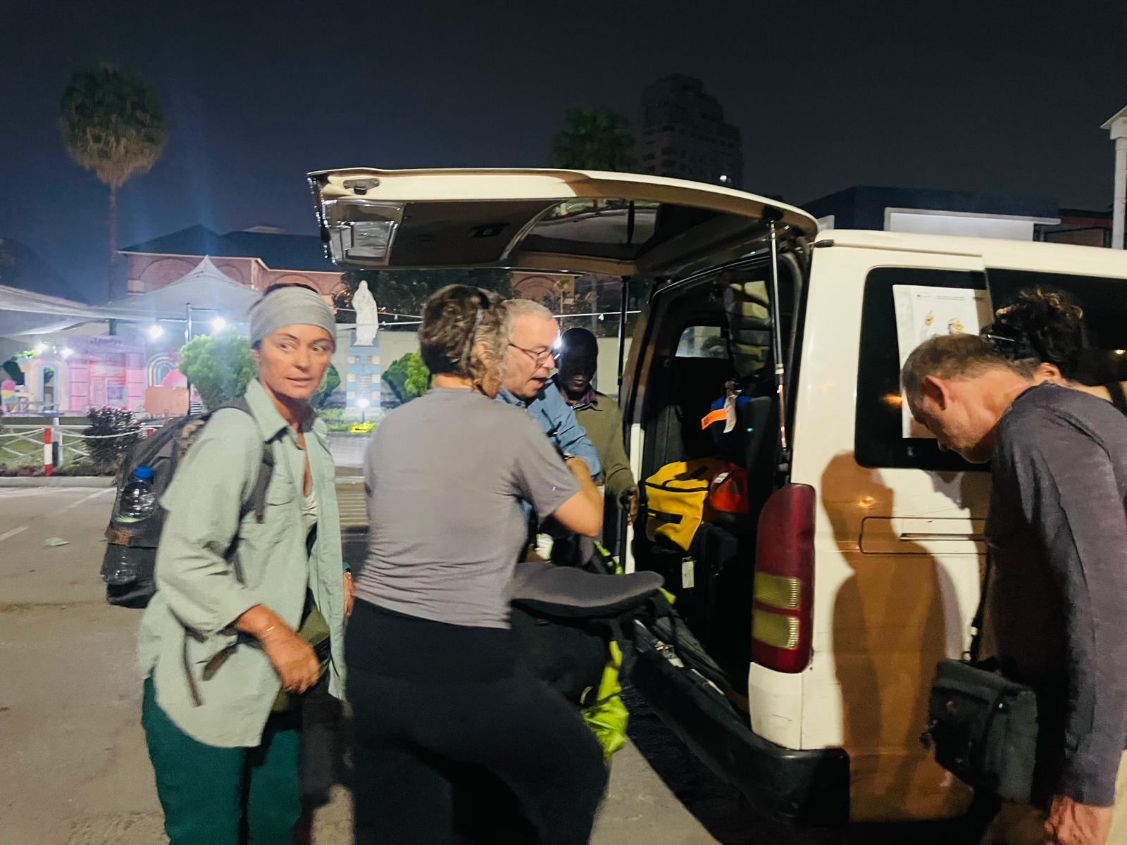 Les pisteurs nous ont dit que les Bonobo étaient à 1h de marche, une demi-heure de jeep. Nous avons décidé de nous lever vers 3h30. Nous sommes partis à 4h10. Chacun a géré son réveil et tout le monde était présent à 4h10. Nous avons fait un Tetris corporel dans la jeep et nous nous sommes rendu au point de rencontre des pisteurs.