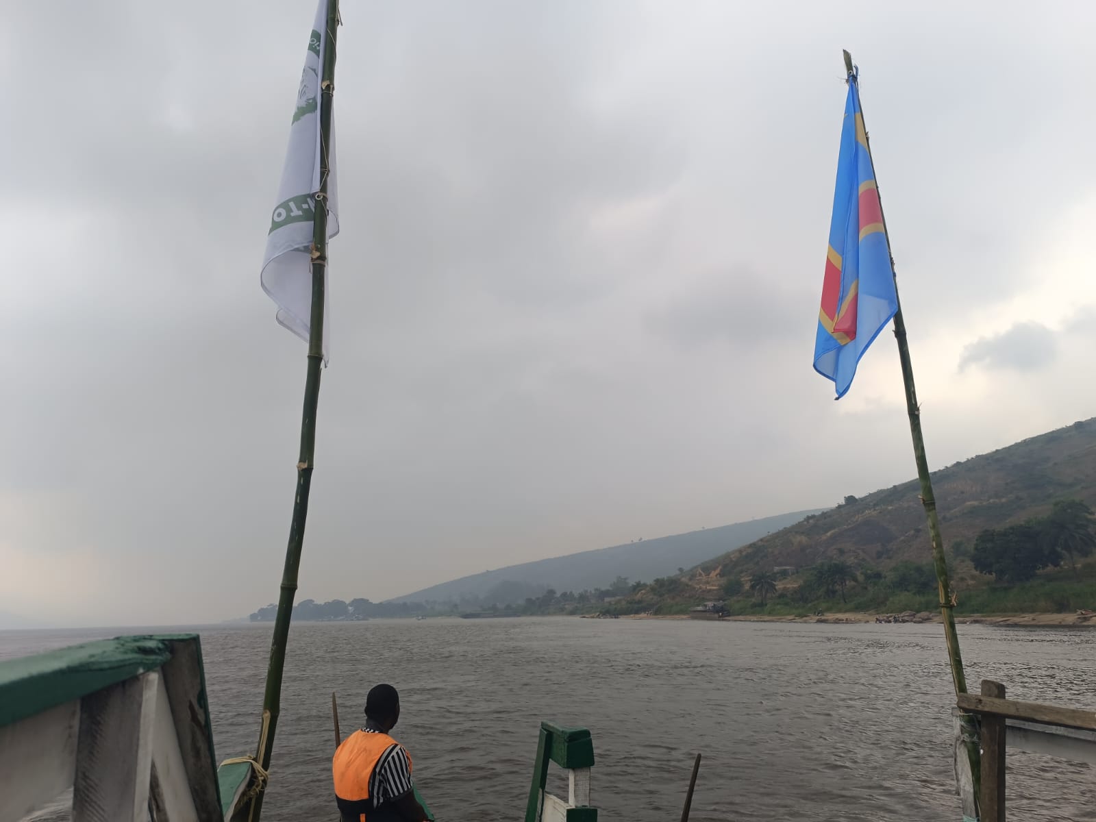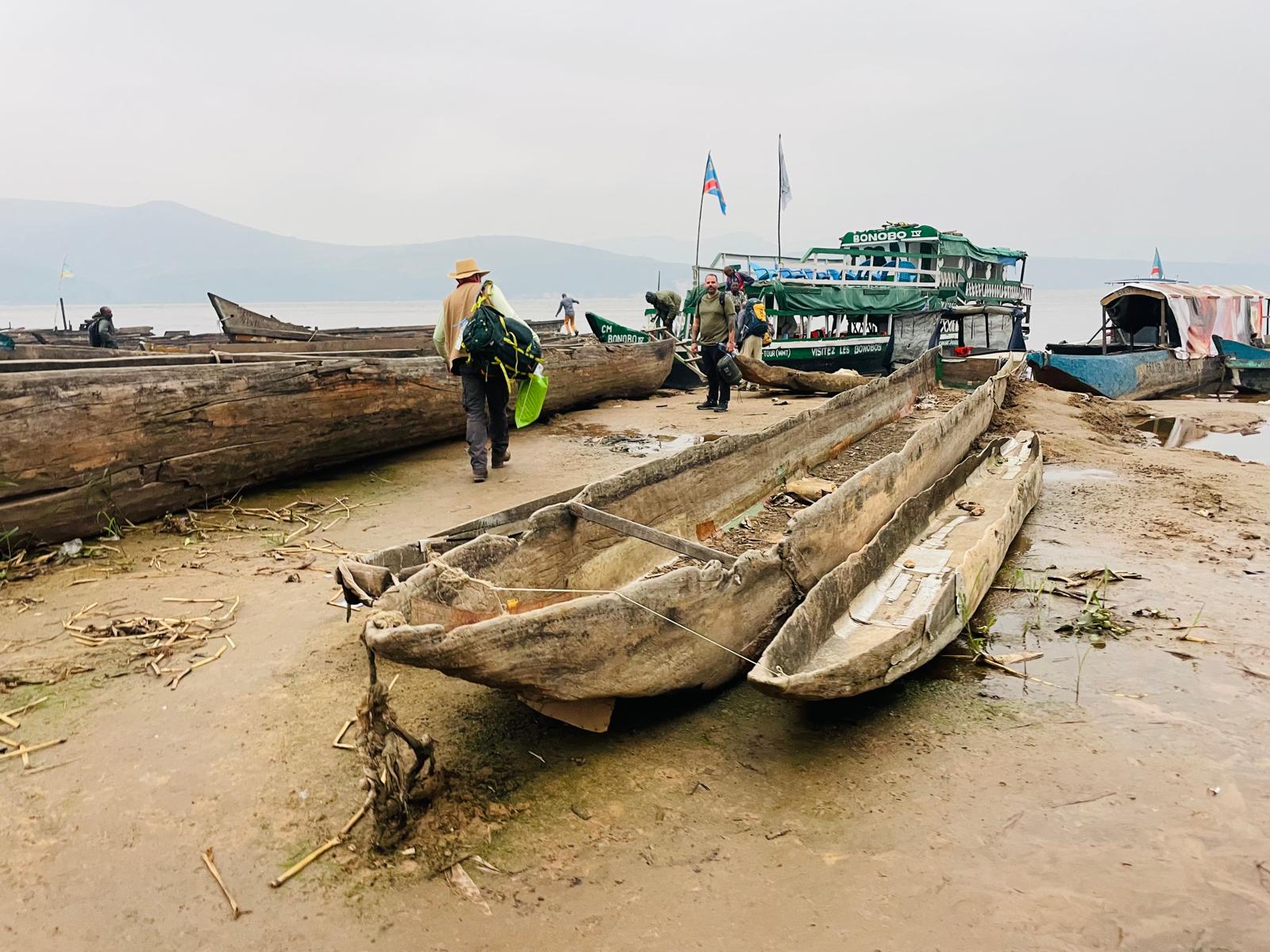 Pendant cette journée complète de pirogue petit quiz sur le bonobo et le seul endroit où il habite, La RDC ! avec des magnifiques paysages … autour de nous … sauvages, quelques petites pirogues de pêcheurs et des énormes baleinières avec des centaines de personnes à bord.