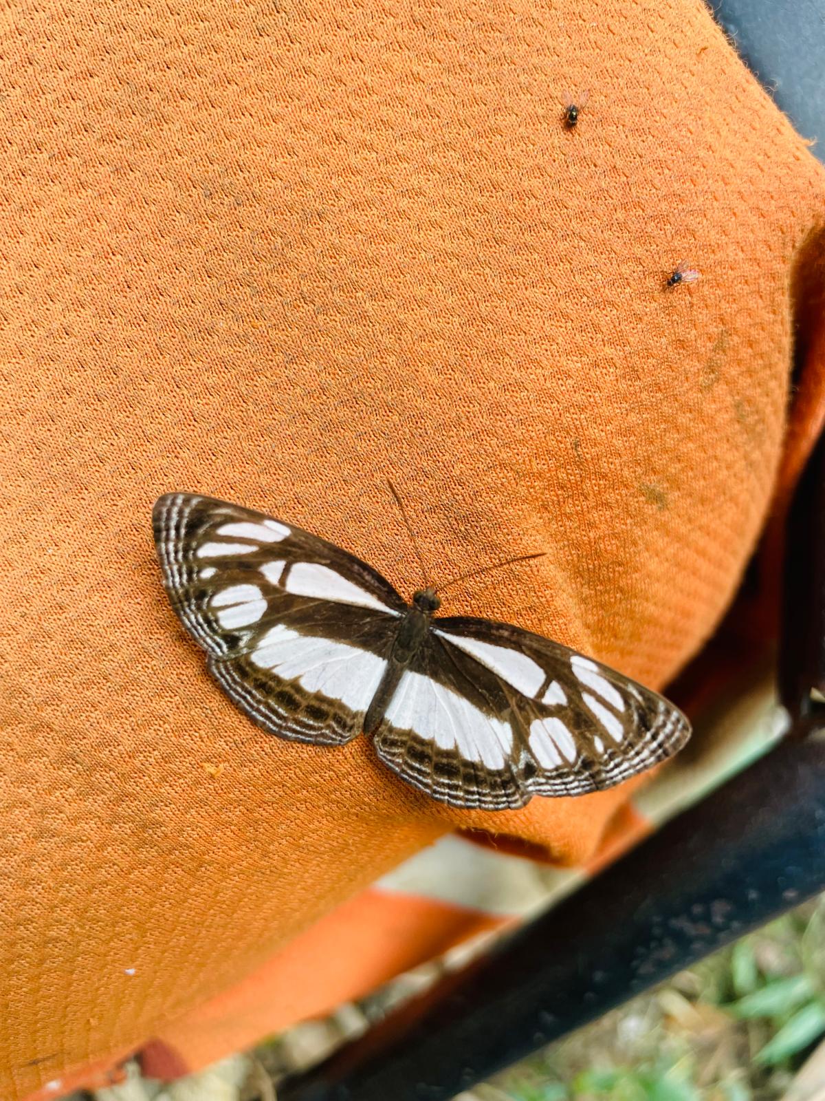 Durant notre trek de 2h30 nous observons un insecte noir et orange avec antennes jaune, beaucoup de petites fleurs bleues, une petite grenouille, une plume de touraco.