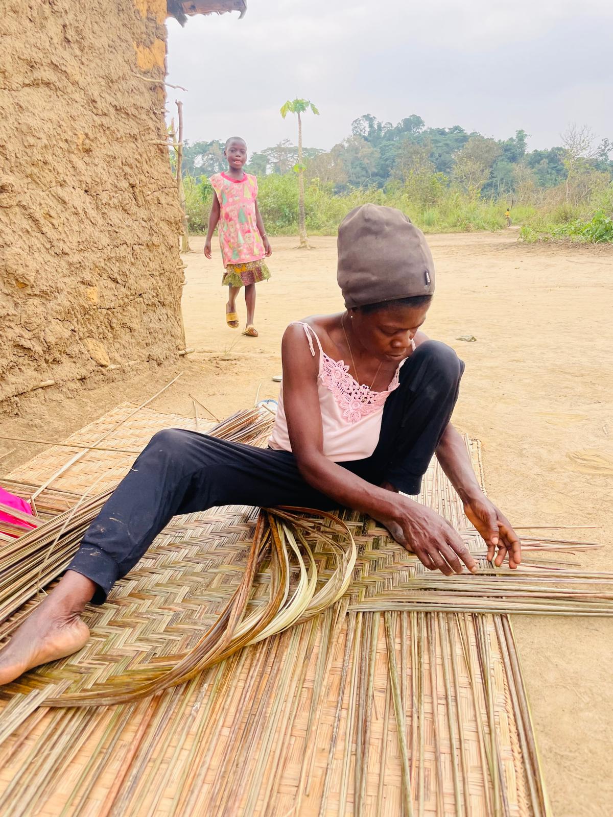 Puis partir au puits. Le vélo sert de brouette et Mamá Monique nous montre comment extraire la fibre des roseaux pour faire des nattes.