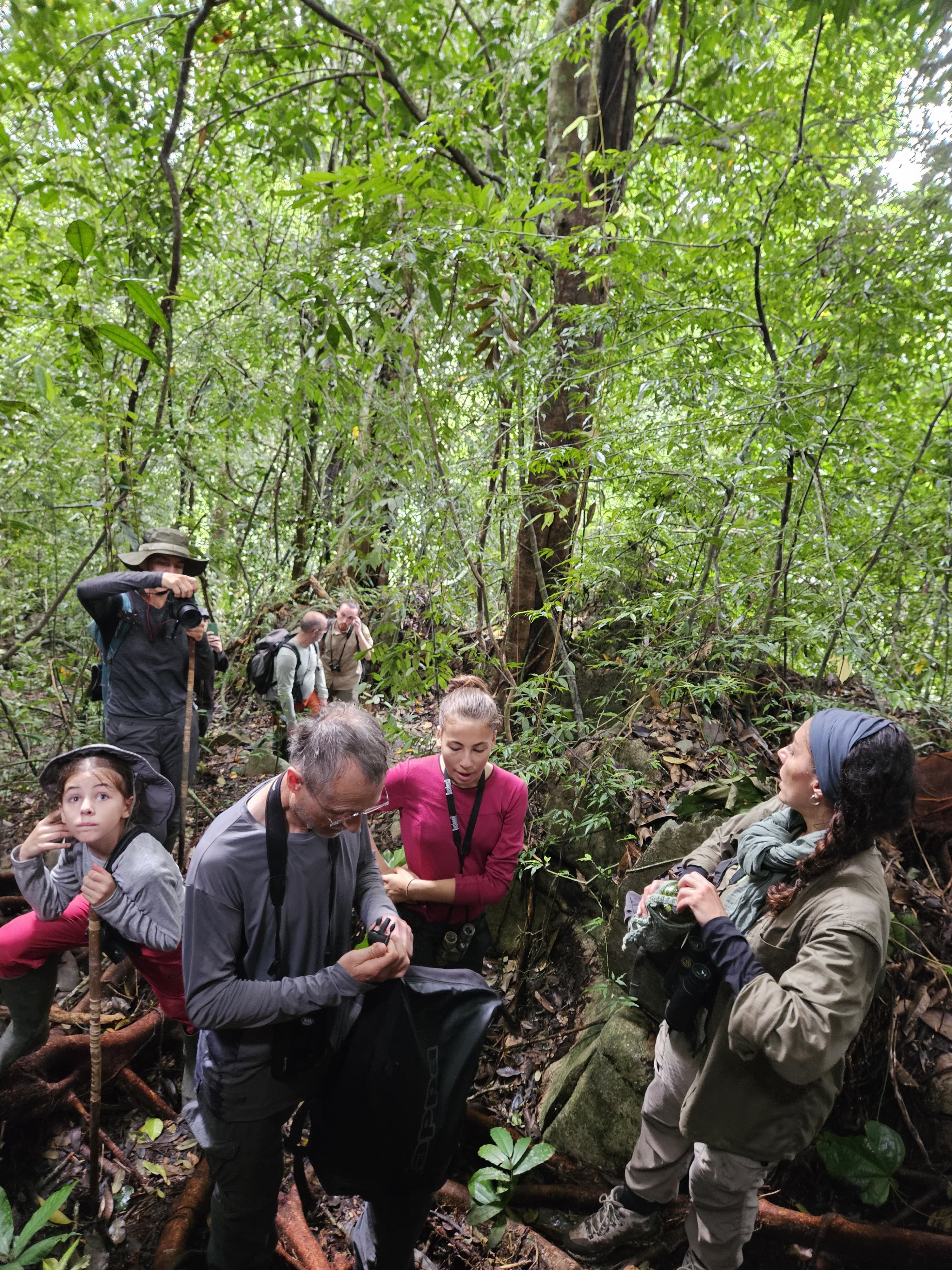 Retrouvailles matinales à 7h30 pour les crêpes aux bananes (+ chocolat) et le plateau de fruits toujours aussi frais et goûteux. Départ de tout le groupe en direction de la forêt à 8h30.