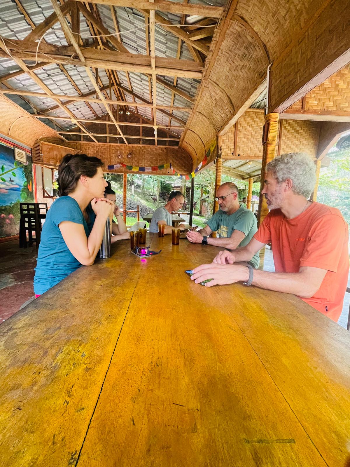Clément et Claire rejoignent le groupe à la Guesthouse vers 14h30, pendant le repos.