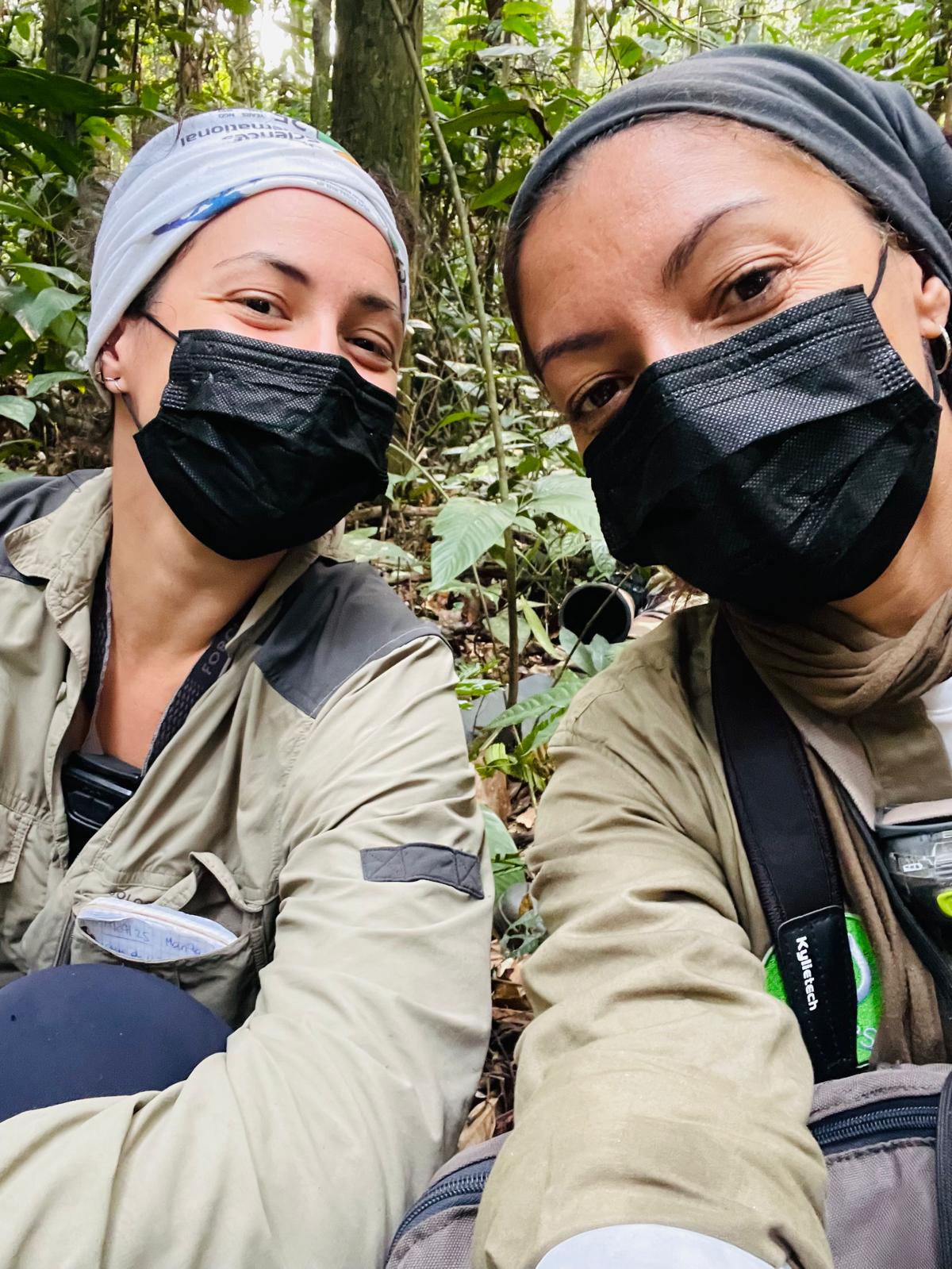 On arrive sous le nid après 1h20 de marche pile au moment du réveil des bonobos ! Première rencontre avec notre sujet d’étude...